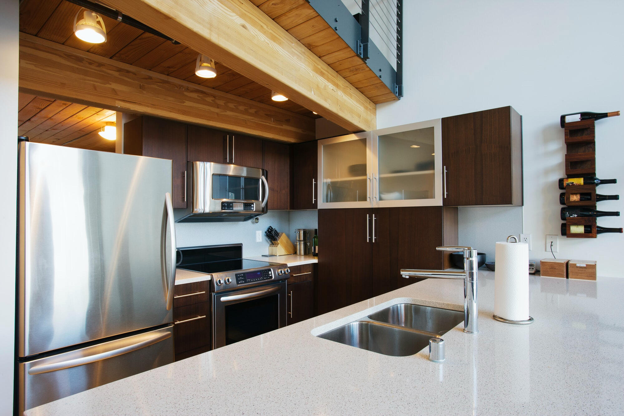A gorgeous furnished large hardwood floored high ceiling office on the main floor.